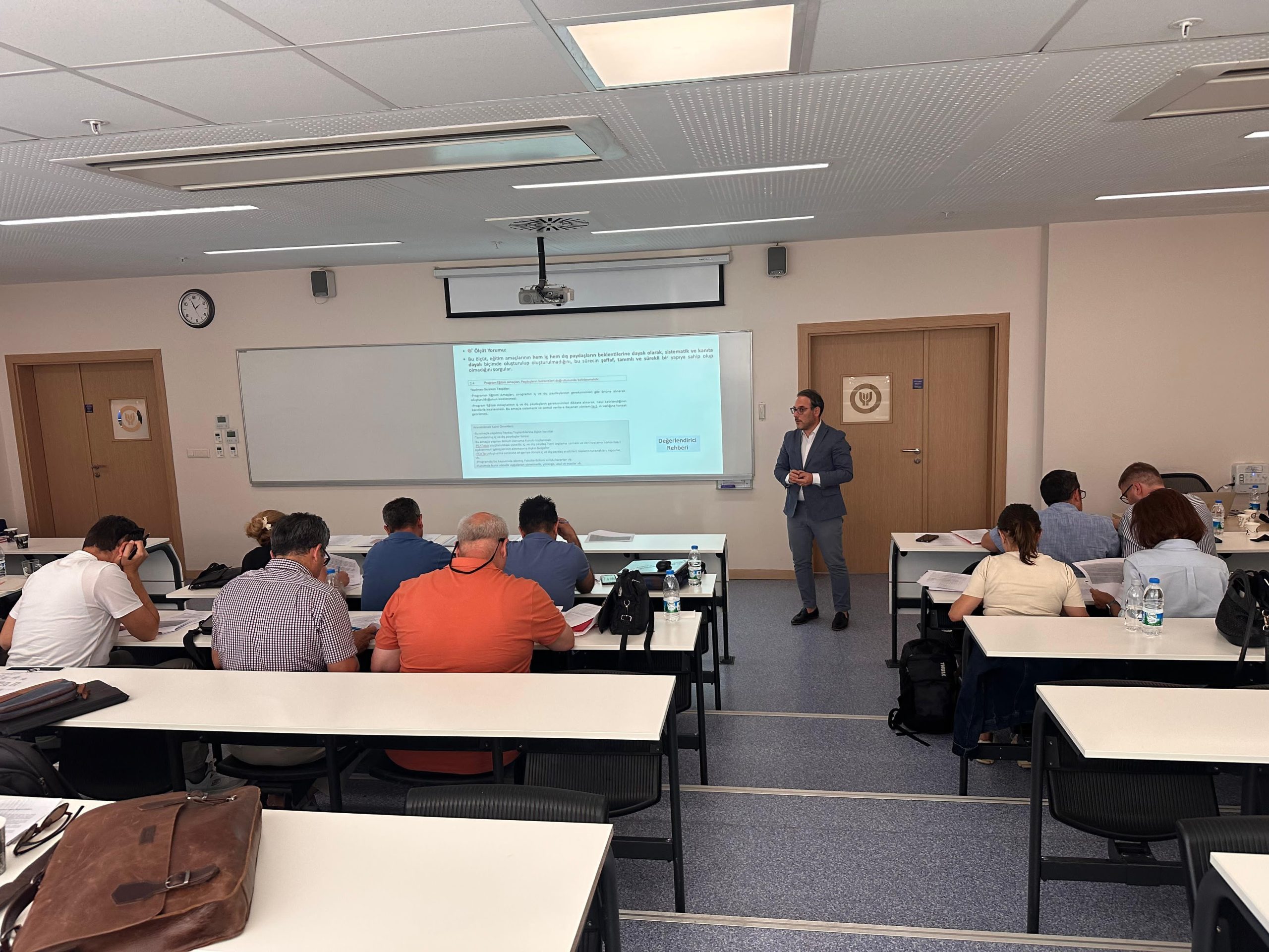 İki oturumdan oluşan eğitimde, ilk bölümde değerlendirici rol ve sorumlulukları, akreditasyon sürecinin adımları, ölçütlerin yapısı ve doğru okuma yöntemleri gibi temel başlıklar ele alındı. İkinci oturumda ise uygulamalı bir çalışma gerçekleştirildi. Program, değerlendiricilik sürecinin hem teorik hem de pratik boyutlarını kavratmayı amaçlayan kapsamlı bir içerikle tamamlandı.